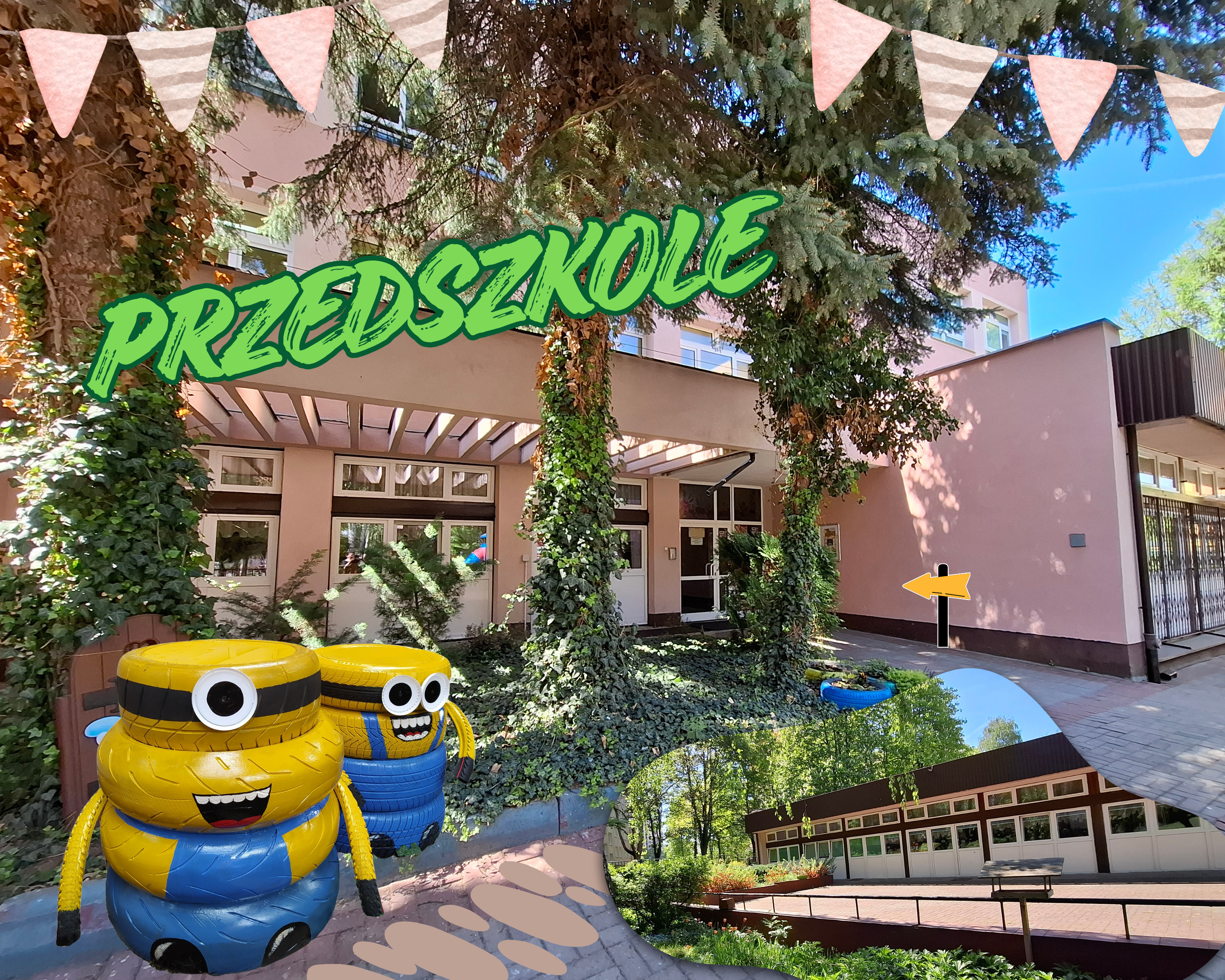 Budynek przedszkola jest nieduży, mieści 4 sale dla dzieci z bezpośrednim wyjściem na duży hol oraz taras, szatnię, gabinet do pracy specjalistów. Dziecięce toalety znajdują się w każdej sali. Bezpośrednio sąsiadujemy z budynkiem Szkoły Podstawowej z Oddziałami Integracyjnymi nr 301 im. Janusza Korczaka, tak więc z przedszkola tylko kilka kroków do szkoły? Posiadamy własną kuchnię, w której posiłki dla dzieci przygotowują doświadczone panie kucharki.